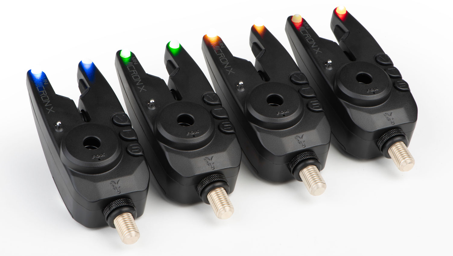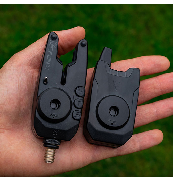 The Fox Mini Micron X bite alarm Set has dropped back differential, compatible with the popular mini micron receiver. It comes complete with two 5mm High Vis Multicoloured LEDs: Green, Blue Red and Orange which can be changed by pressing down on their respective buttons while holding your volume button at the same time!