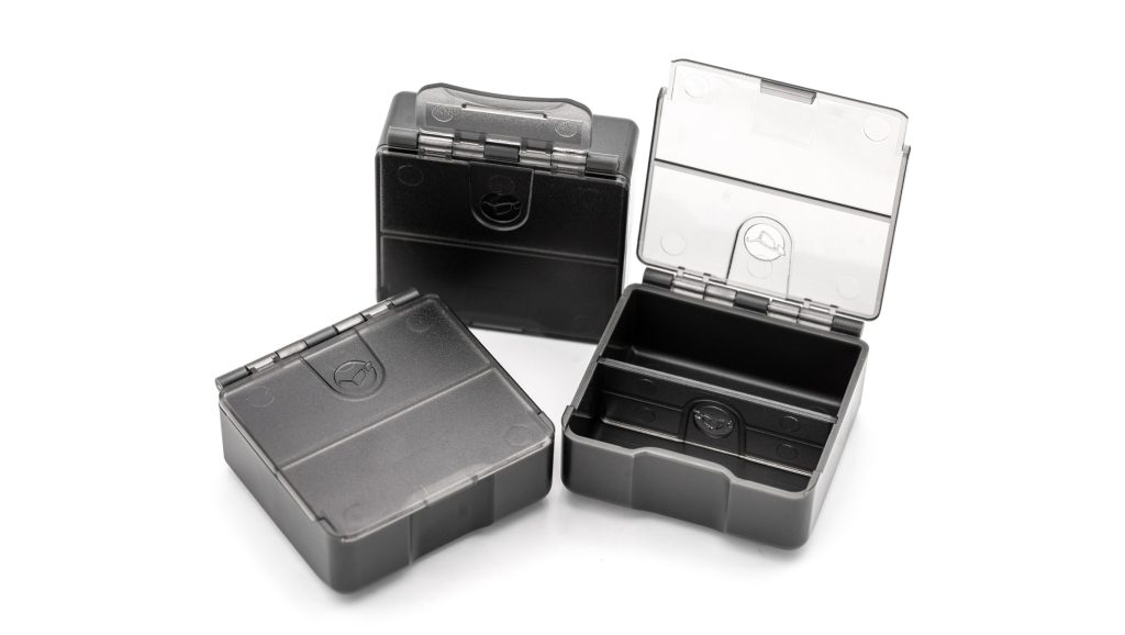 Each box also features a hinged identification label (labels included) so you can quickly see what’s inside and determine which one you need. You can also use it to lift them out of the Tackle Box. You get three boxes per pack, including labels.