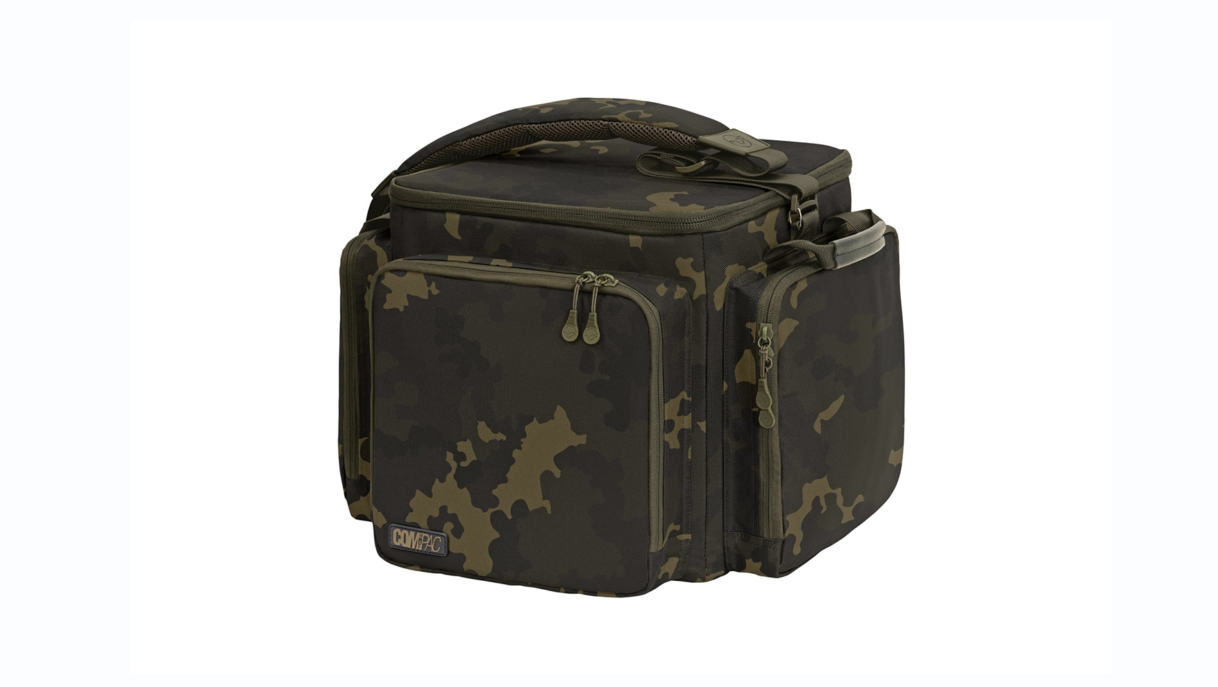The Dark Kamo Compac Cube Carryall is aimed at the shorter session angler, for those who don’t take much kit with them, or as a neat way of organising all of your tackle in addition to using other items from our luggage range on longer sessions. It has been designed with a central, cube shaped compartment measuring 12 inches on each side, with a 30 litre capacity, which can be used to store larger items, as well as featuring a pocket that will hold a small tablet device in a case, plus a zipped pocket on the underside of the lid.