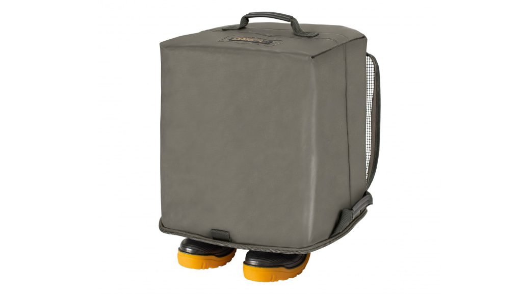 The Compac Wader Cover not only solves that problem, but also enables you to store your waders in transport so that they don’t get everything else on your barrow or in your vehicle wet and muddy. With the Compac Wader Cover you can position your waders wherever you want in your swim and then when you need to use them it is simply a case of lifting it off with the handle on the base (the top when it is being used as a cover) and you’re ready to go. A zipped mesh lid enables air to circulate and moisture to evaporate, but without it leaking onto everything else, as the heavy-duty waterproof material that the rest of the cover is constructed from won’t leak.It also features reinforced carry handles on either side at the top, to enable you to easily lift it on and off of your barrow, or in and out of your vehicle, and there are also webbing loops that a shoulder strap (not included) can be attached to.