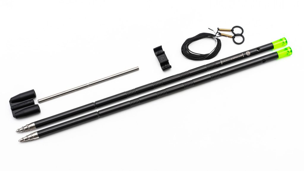 – Each stick features grooves to prevent line slipping off them, spirit levels in the t top for correct positioning, and a cavity that accepts an isotope for night work