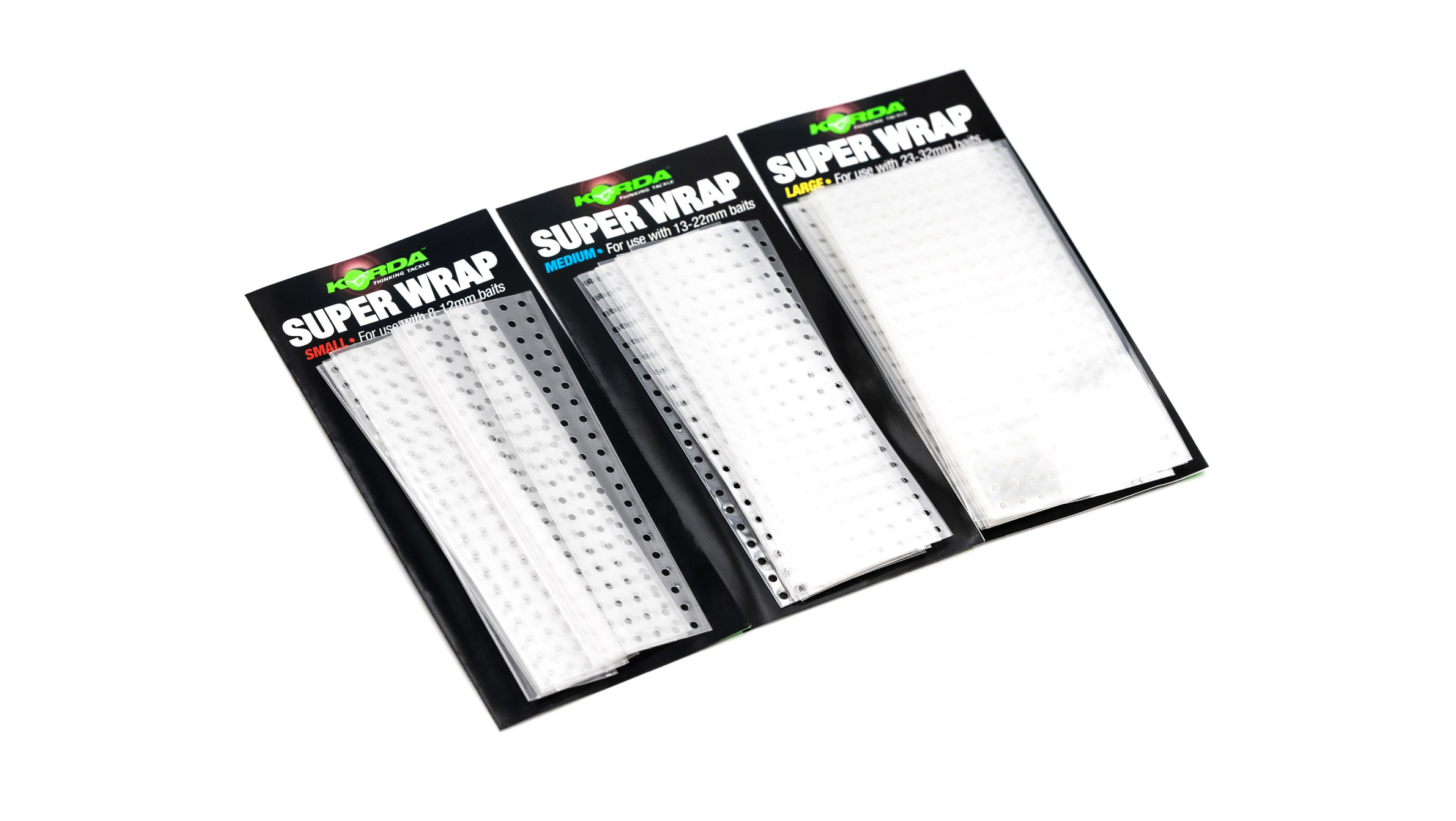 Many waters at home and abroad contain nuisance species, such as crayfish, which can either whittle down your hookbait, or take it off of the hair, and there is nothing worse than sitting and wondering if you still have a bait on! Super Wrap solves that problem and protects your hookbait, whilst still allowing it to leak attraction, thanks to the tiny holes in this clear plastic coating. It is very easy to apply, simply cut a strip from the correct size of Super Wrap for the diameter of bait being used, and then use steam from a kettle to shrink it around your bait. Then repeat the process with another strip of it placed at right angles to the first one – thus covering the entire boilie in Super Wrap and preventing it from being damaged. Using this in conjunction with our Extenda Stops will prevent the bait from being pulled off of the hair. Three different sizes are available – Small for 8-12mm baits; Medium for 13-22mm baits; Large for 23-32mm baits.